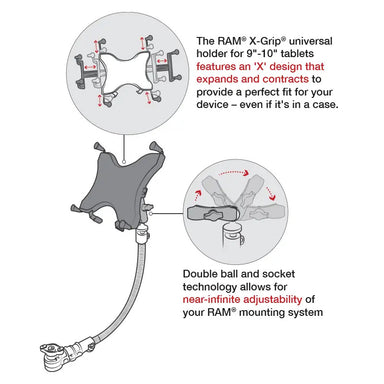 View full detailsThe RAM Tablet Mount with Quick Release & Swivel is the perfect solution for mounting virtually any 9"-10.5" tablet to any wheelchair armrest t...