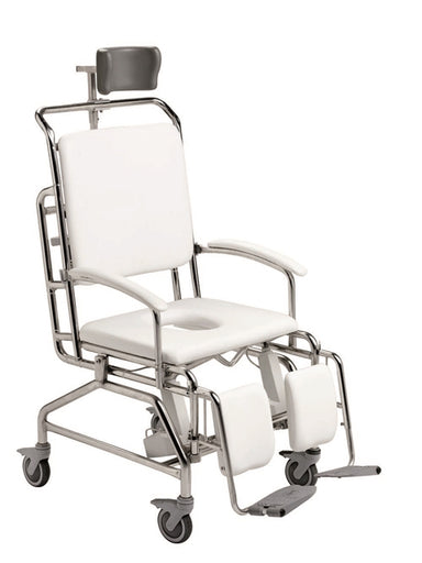 Assists transportation of the client for showering and toileting designed for the larger user that requires a tilt seating position. The shower com...