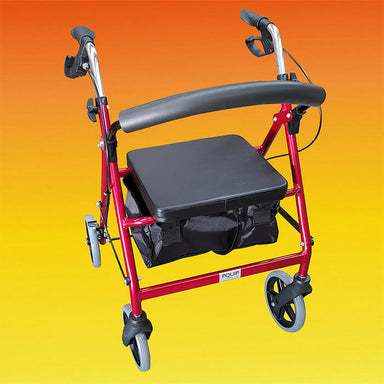 A lightweight aluminium four wheeled walker with a height adjustable seat. other features include lockable bicycle style brakes, height adjustable ...