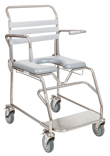 Most shower commodes are designed to be pushed by a carer. However, we also offer self-propelled chairs for clients with more independence.