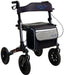 A sturdy all terrain x-fold rollator with large 10" pneumatic tyres designed for smoother travel along rough surfaces.